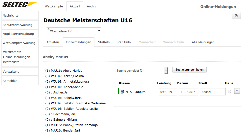 After selecting the event, you must now first select the athletes you wish to enter for the event.